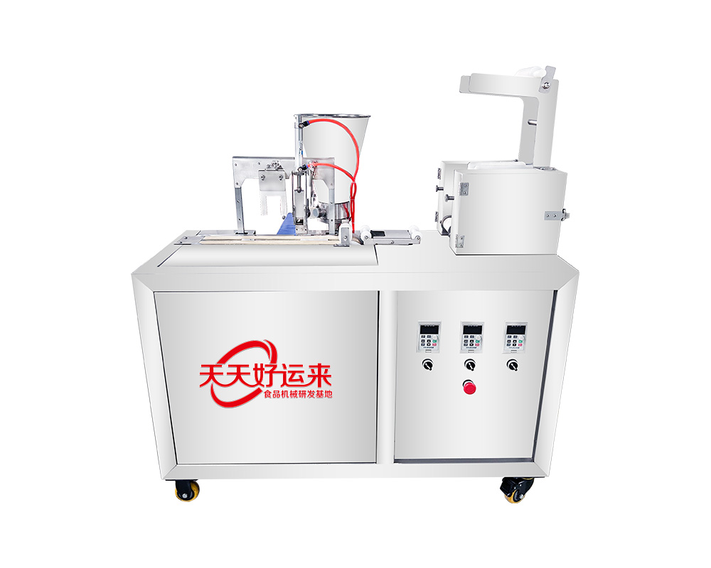 150餛飩機 ,是將壓好的面餅放在機器輸送架上,即可搟皮-注餡-包合-送合-人工整形??捎唵紊a10克-30克的餛飩(下單前要注明需用多重的餛飩給客服人員),本系列機型產品多樣更換不同磨具可生產不同的花形:如餛飩、餃子、蒸餡、鍋貼等。
