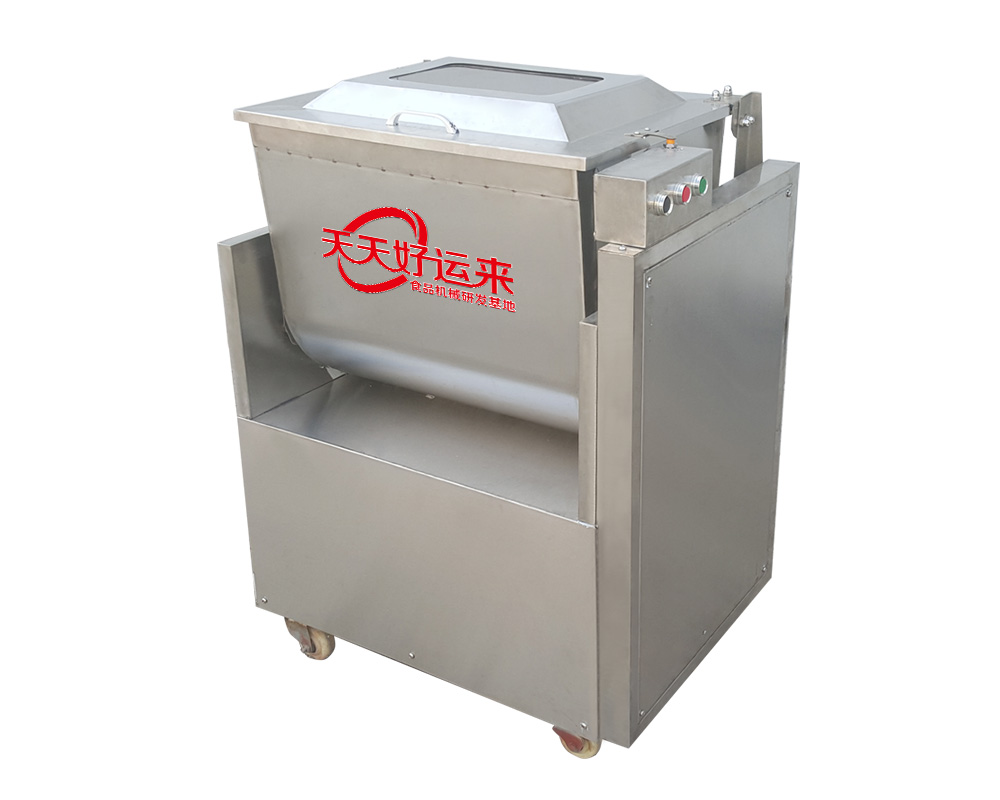 拌餡機是用于混合多種原料的高效機器,效率高,便于操作,使拌出的肉餡纖維細化,加入的調味汁液能充分吸收飽和,以保持餡的松、