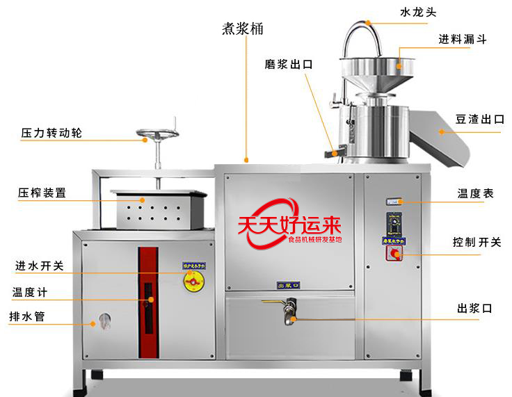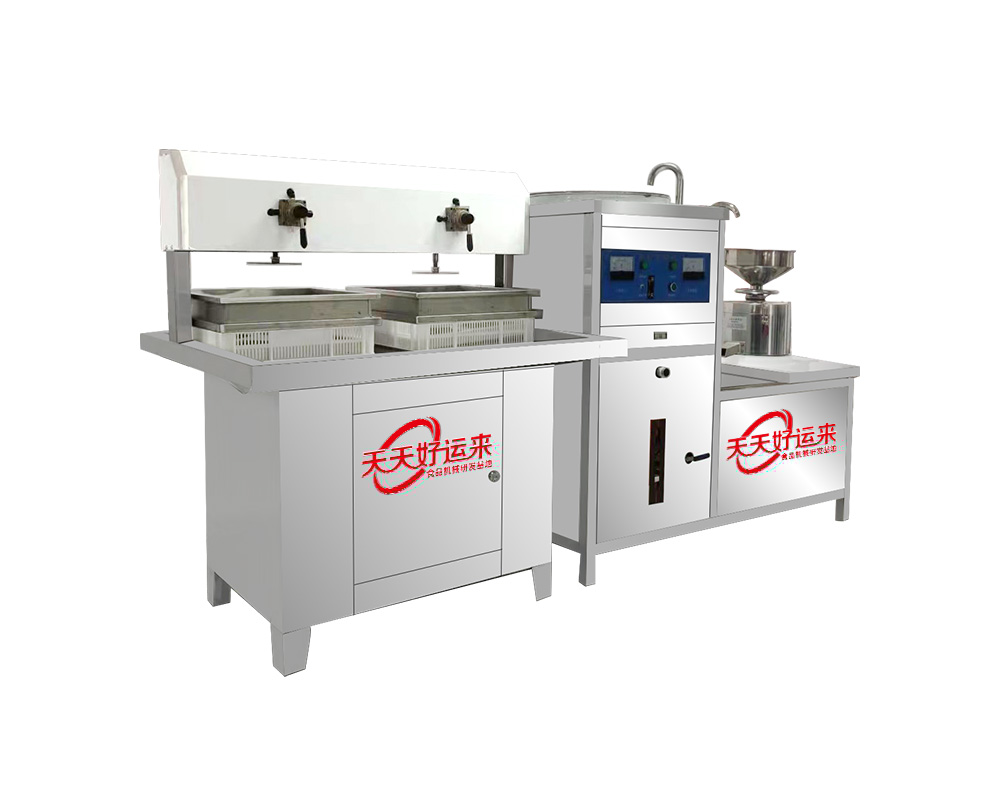 • 豆腐機由磨漿機、煮漿機、壓制成型機等三部分組成,根據工藝及輔助工作可加:豆漿、豆花、豆腦、老豆腐、嫩豆腐、鹵水豆腐、石膏豆腐、酸漿豆腐、彩色豆腐,果蔬豆腐及各多種混合豆腐及豆干、豆皮、小豆腐、包漿豆腐、豆泡、素雞等豆制品;中小型豆腐機:分為單磨單桶雙壓榨、單磨單桶單壓榨和雙磨雙桶雙壓榨款式、雙磨雙桶四壓榨款式等;每款又分為:電款與電和燃氣兩用款等,可滿足不用場的用戶需要;...