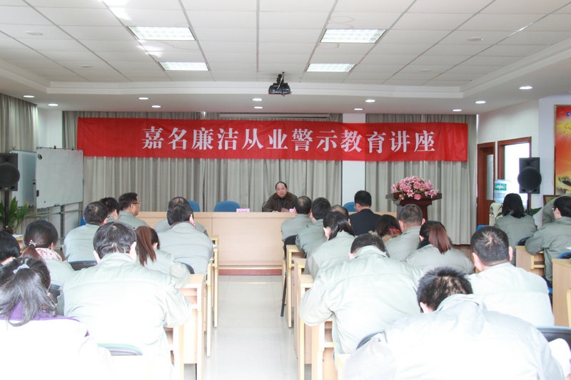 為加強經營管理人員的從業廉潔教育,促進公司上下認清形勢、提高認識、遵章守紀、廉潔從業,12月26日下午,公司舉辦廉潔從業警示教育專題講座。公司領導,各部門、各事業部負責人,全體營銷經理、外協人員,部分倉管員等50多人聽取講座。講座邀請桐鄉市檢察院原黨組成員、副檢察長沈俊夫就非公企業職務經濟犯罪的預防進行了深入講解,講座還宣貫了《公司員工廉潔從業規定》,公司莫總講了話。
